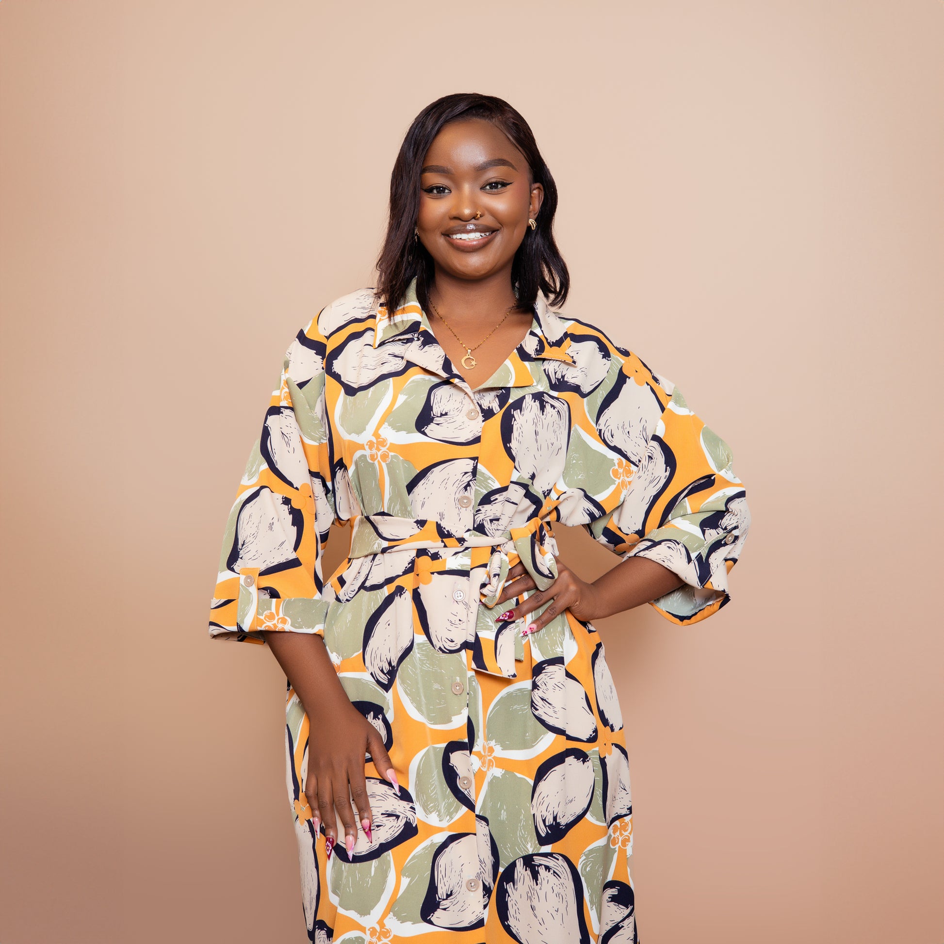 Details: Midi shirt dress featuring a collared neckline, button-down front, and three-quarter sleeves. Designed in a relaxed silhouette with side pocketsĀ and a scalloped hem for added shape and movement. Comes with a matching belt for optional waist definition.